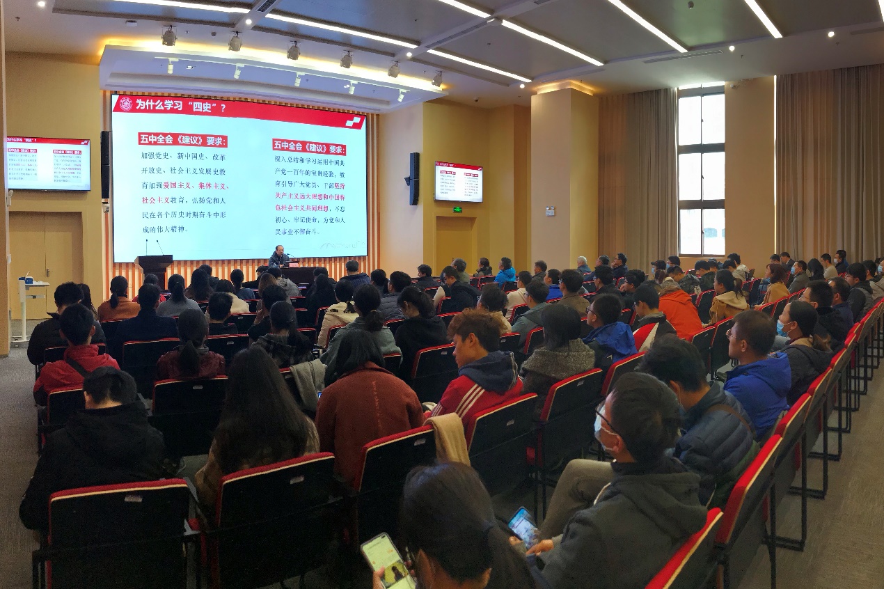 为扎实推进“四史”学习教育,12月9日下午,公司党委书记梁齐围绕“学四史、守初心、担使命”的主题,在理科群楼300号报告厅为近两百名师生党员上党课,公司党委副书记殷洁主持。