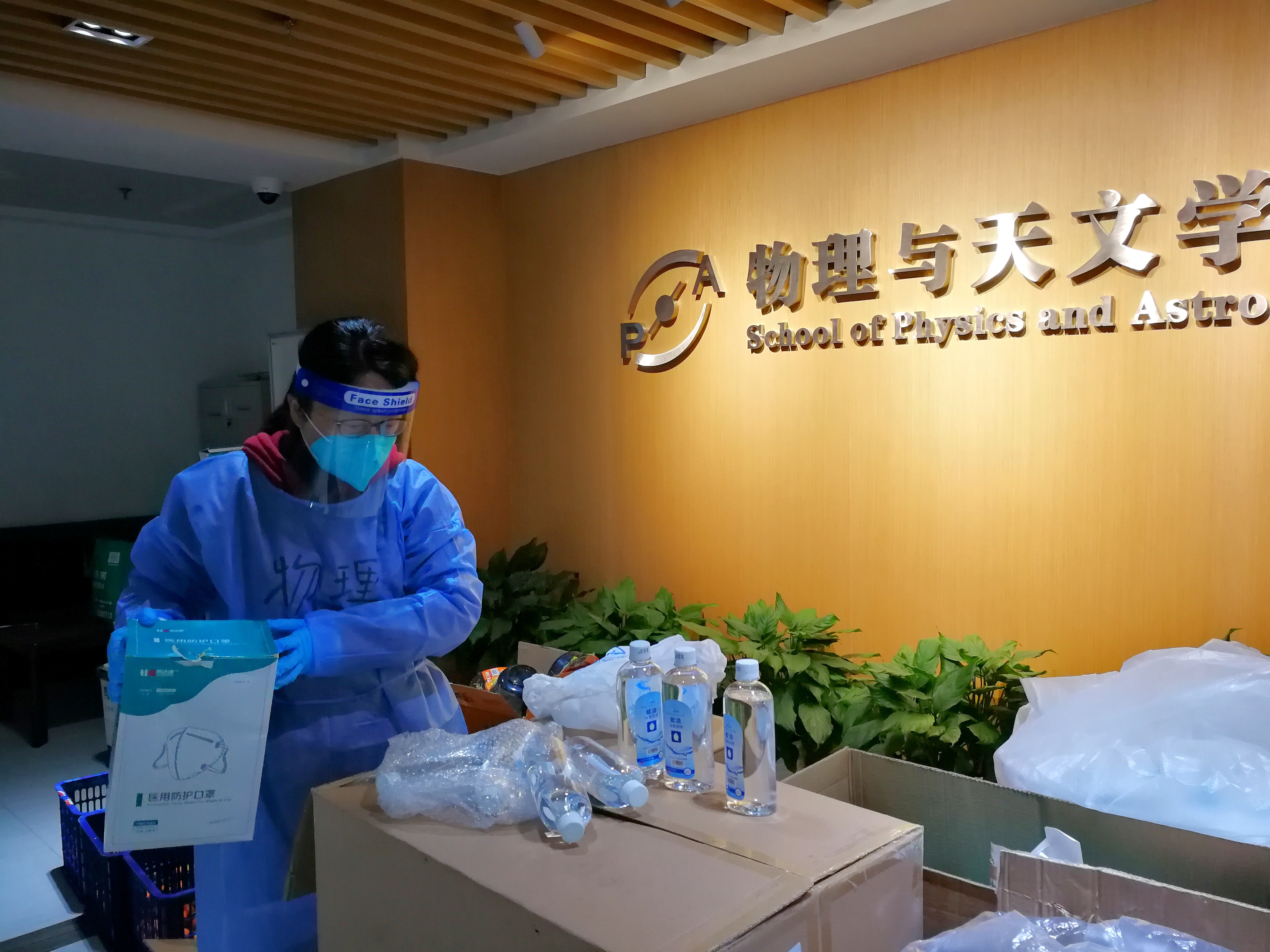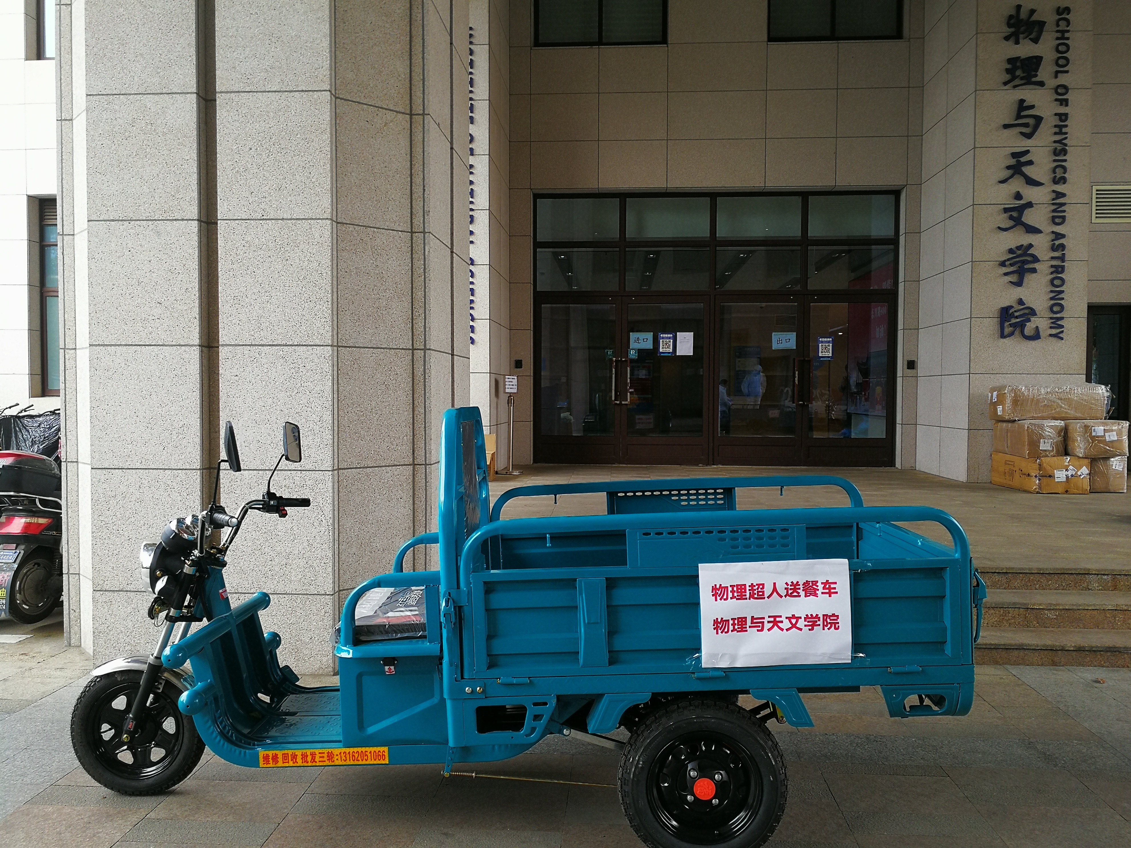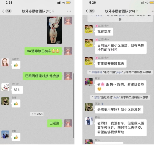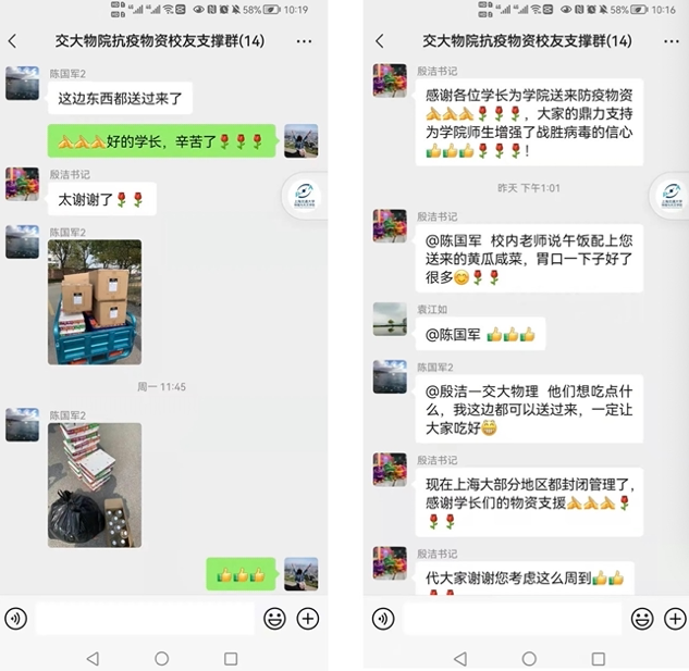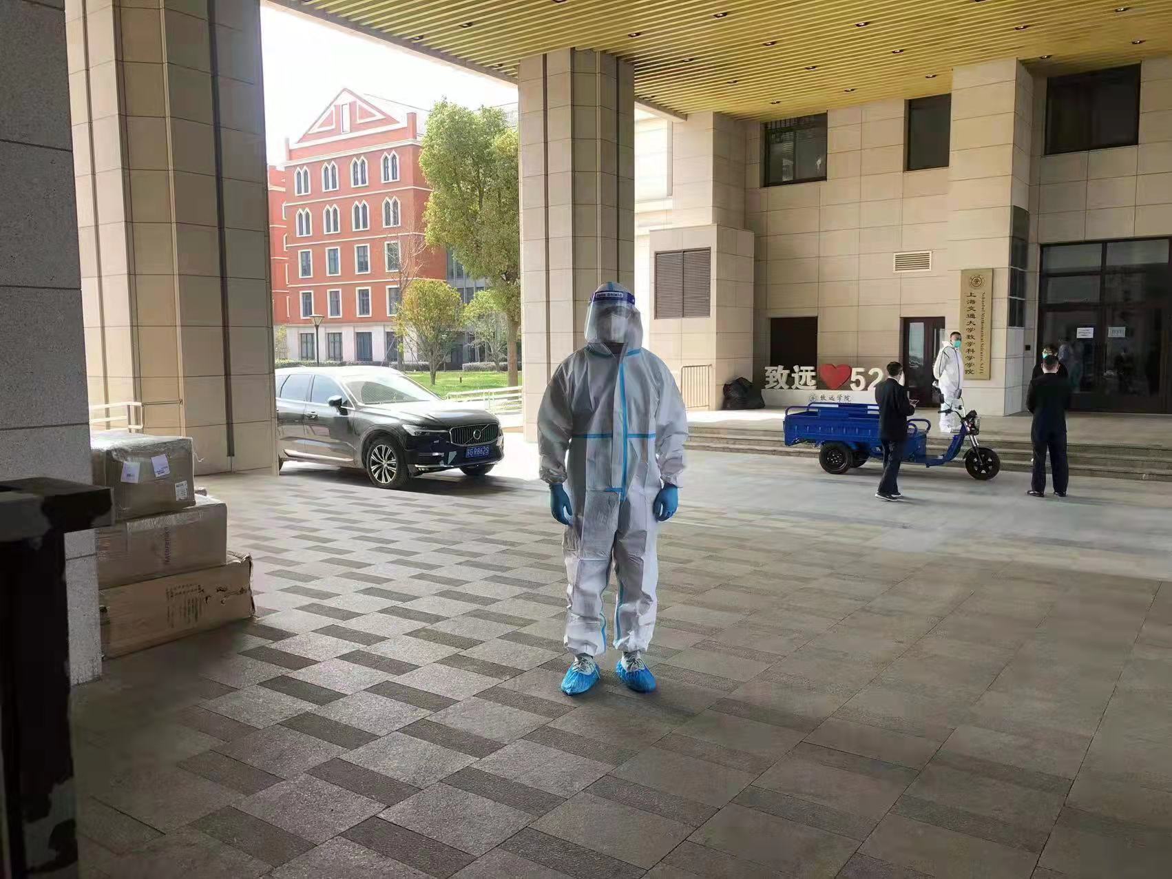 校内力量有限,校外联动配合。在党委副书记殷洁的号召下,以党员同志为主体,公司组建了校外志愿者团队,多位教师主动提供车辆、办公室床具、取暖装备等,在校内物资短缺时,赵娟、王嘉铭等多位党员同志及时给校内师生送去方便食品、消毒用品和清瘟药剂,提供了充足的后勤补给。此外,公司党委副书记殷洁建立『交大物院抗疫物资员工支撑』群,党员、员工工作老师叶丹广泛发动员工捐款捐物,收到各届员工捐赠的电动三轮车、消毒用品和防护服等抗疫物资,为校内师生送去温暖。