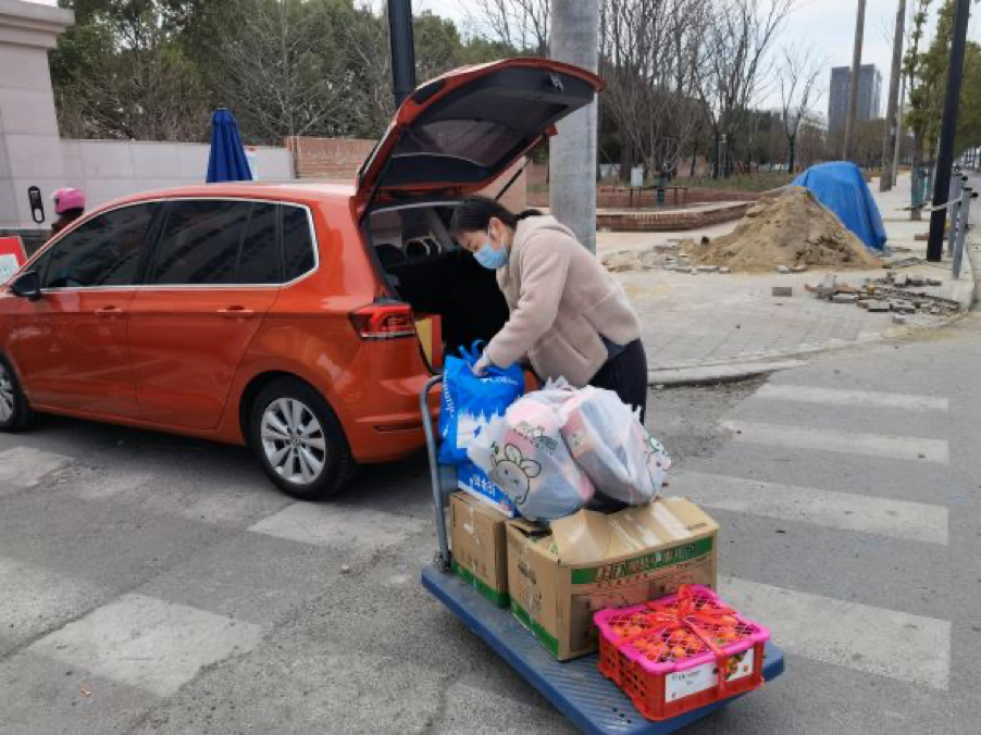 赵娟老师为校内教师运送物资