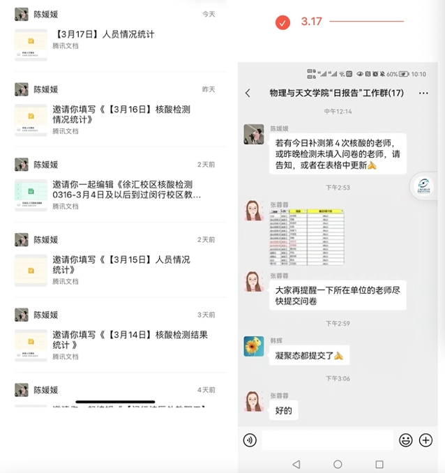 校园疫情防控形势突变时,公司行政人员迅速落实数据统计,全面精准掌握人员底数。党员比例达80%的数据收集组每天负责完成公司各类数据表格,全天候在线坚持,落实全体师生的核酸检测情况,与教职员工对接沟通,做好公司防疫政策解读和教职员工心理疏导,为公司抗疫工作提供支持和服务。