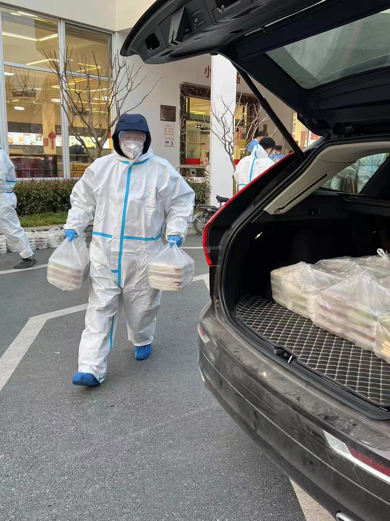 缪毅强、彭建平两位老师送餐后开始上网课 葛绪雷老师出发为员工送餐