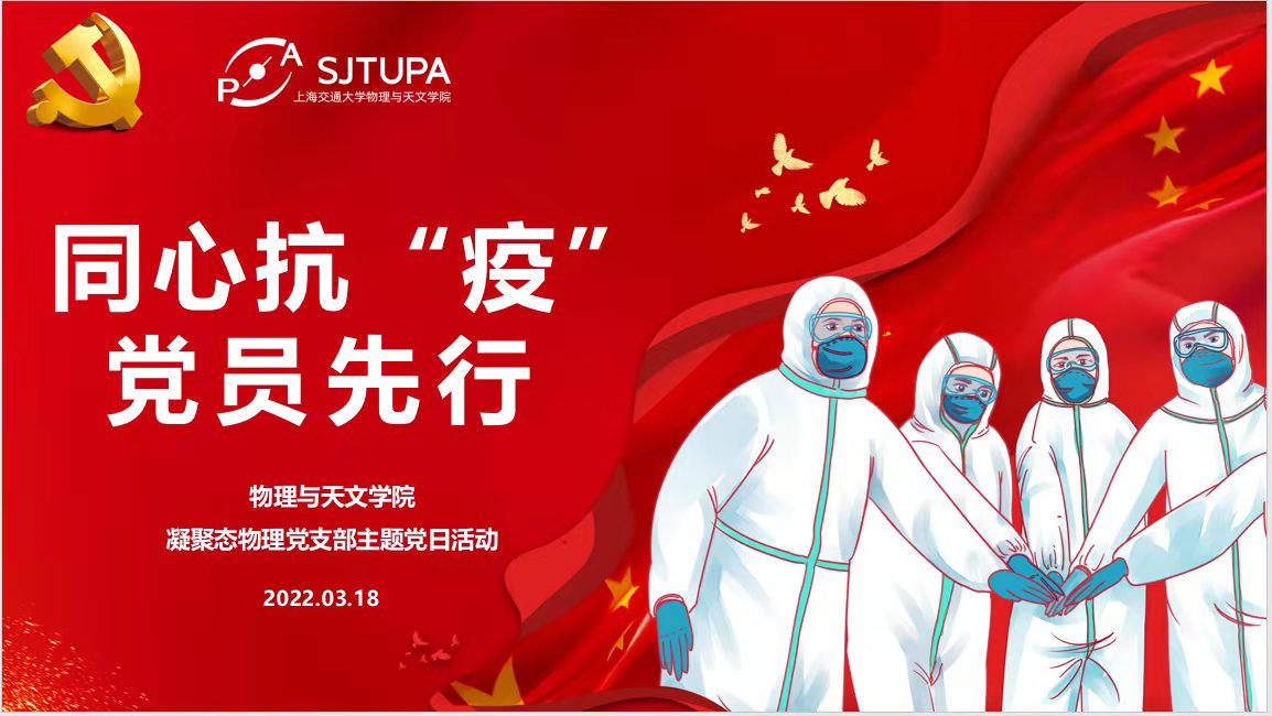 3月18日晚,Bevictor韦德凝聚态物理党支部举行线上主题党日活动。本次活动以“同心抗疫,党员先行”为主题,与会党员分享在校内封控和社区封闭管理期间的经历体会,促进信息沟通、统一抗疫思想,号召党员同志在疫情期间做好表率,进一步推动阶段性抗疫成果。公司党委书记梁齐,党委副书记殷洁、朱敏,校研究生院培养办公室主任、凝聚态物理党支部书记刘灿华,以及支部全体党员参加本次主题党日活动,公司其他基层党支部教工党员列席活动。会议由刘灿华主持。