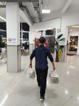 刚开始封校那会,所有人都是可以去食堂的,只不过都换成了一样的盒饭,大家排队购买打包带走。第二天封控升级,食堂限流,每次只能排长队进去打饭。由于情况逐渐严峻,公司进一步加大控制力度,严禁员工出宿舍。这就带来了一个怎么吃饭的问题。而滞留在校园内的老师们,则主动请缨,为同学们担当起了送餐快递小哥。我们公司对接6栋员工宿舍,大家分成三组,开着私家车,去各个食堂拿饭,然后放到宿舍楼下,第一天的送餐开始了。