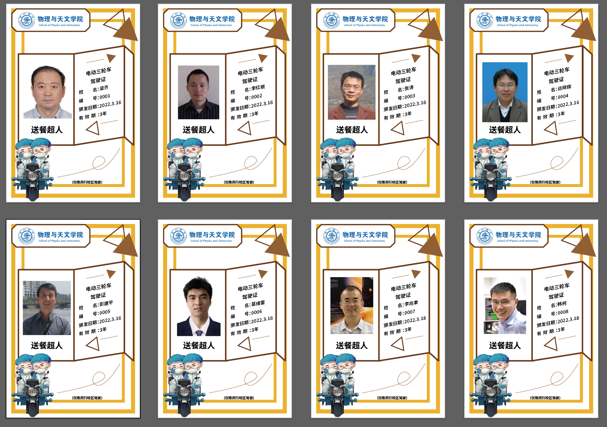 书记考虑我们送餐的安全,还给每位驾驶员和助手配备了头盔。大家全副武装,装备整齐,体现了交大物天公司教师的风采。我相信战胜疫情指日可待,我们这支教师送餐大队将继续坚守在公司,保证同学们的一日三餐。