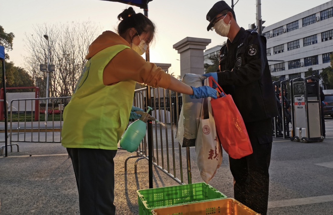 3月11日晚报名了保卫处在北一门的志愿者,主要负责接收同学们购买的以及家长、工作人员家属送来的生活用品,对物品外包装进行消毒分类。