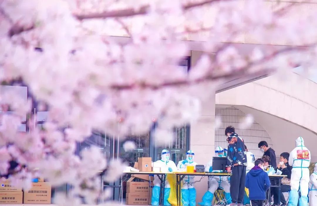 3月9日一早,当知道公司即将封校并进行大规模的核酸检测,急需人手,我迅速在已有的志愿者队伍中招募了40人赶赴霍英东参与核酸检测场地的布置工作。我们分作两批,队长带领一批去到新图;我带领一批去南体,帮助医疗团队搭建临时核酸检测场地。作为在交大的一名员工,我对公司的防疫工作充满了信心,而作为一名预备党员,我对此刻正在做的工作更是充满了热情。相信不久的四月一定能渡过难关,那时樱花依然盛开。