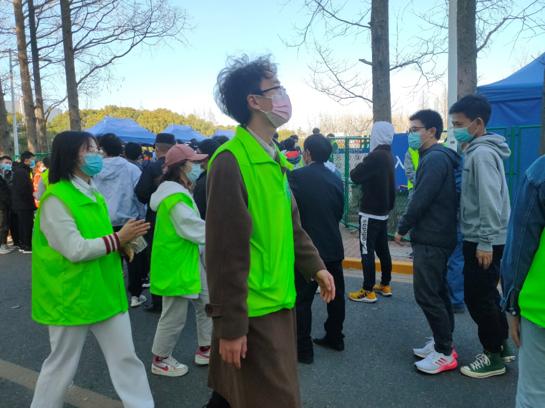 封校初期,我所在的本科生党支部共有6位党员第一时间报名参与志愿者,分别是王佳琪、金成、谢名智、何海波,谢难弟和我。我们分别奔赴新图、南体、霍英东和东大门展开志愿服务,协助医护人员引导核酸检测人群。