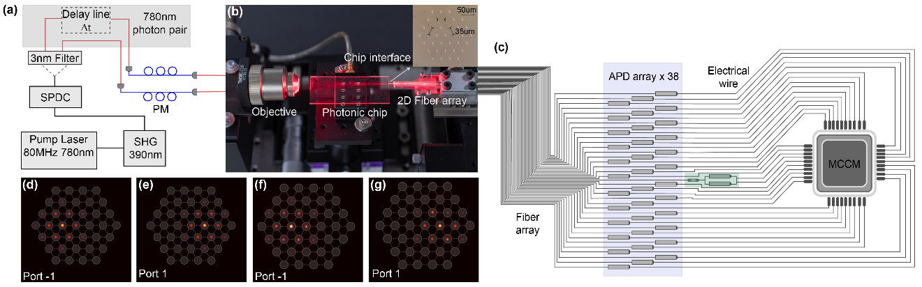 The quantum walks between multiple particles needs to be measured by quantum correlation, which means that the researchers need to accurately import the evolution results into the detector, and then use a large-scale coincidence measurement device to perform the coincidence measurement as Figure.3 shows. The researchers designed a new two-dimensional fan-out structure to maximize the protection of the evolutionary results and realize the direct connection between points to points, which makes large-scale synchronous coincidence measurement possible.