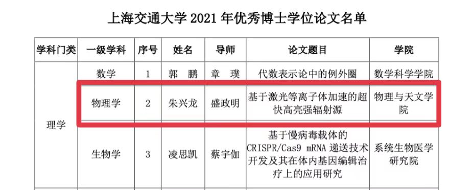 公司博士生朱兴龙的论文《基于激光等离子体加速的超快高亮强辐射源》(导师:盛政明)入选。这是公司连续6年荣获校优秀博士学位论文。向获评的员工和导师表示祝贺!