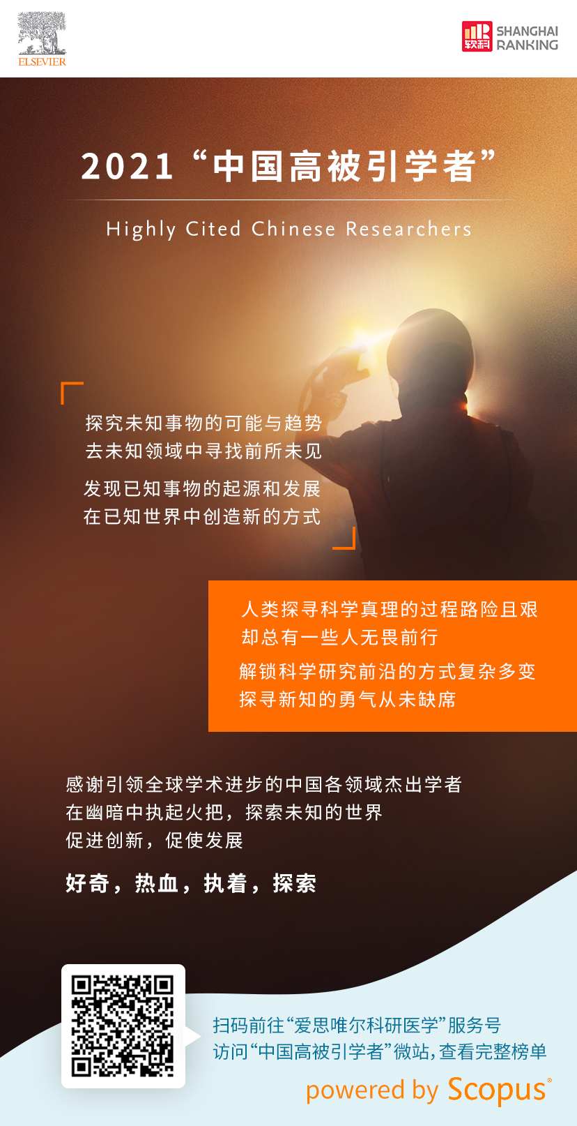 近日,爱思唯尔(Elsevier) 重磅发布2021“中国高被引学者” 榜单。此榜单以全球权威的引文与索引数据库Scopus作为中国学者科研成果的统计来源,采用上海软科教育信息咨询有限公司开发的方法,分析中国学者的科研成果表现。自2015年首发,至2022年已是第八次发布,并受到国内外众多媒体和学者的高度关注。