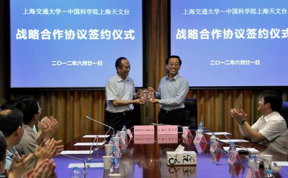 据悉,上海交大和上海天文台在科学研究、团队建设、人才培育三个方面已有部分合作。此次战略合作备忘录的签订,目标是以“长期稳定、优势互补、协同创新、共同发展”为宗旨,在已有合作的基础上,实现资源共享,充分发挥各自优势,寻求管理机制上的改革突破,共同构建教学-科研一体化的天文合作创新体系,努力促进我国天文事业发展及相关领域的进步。
