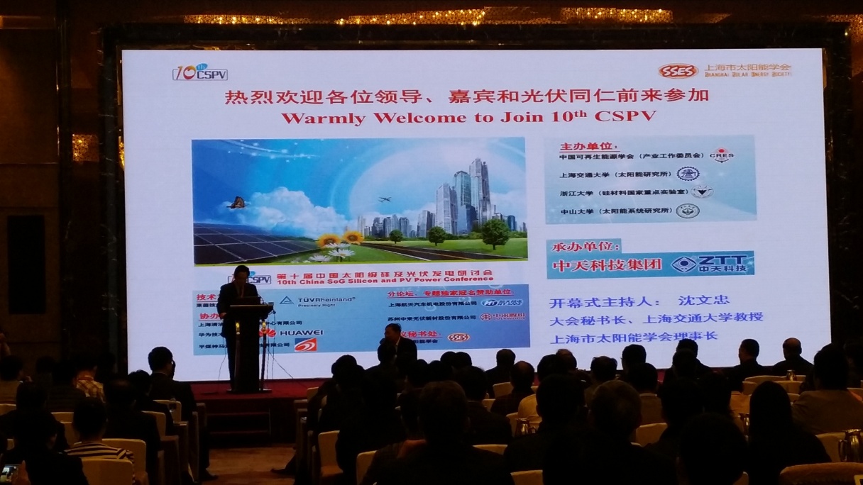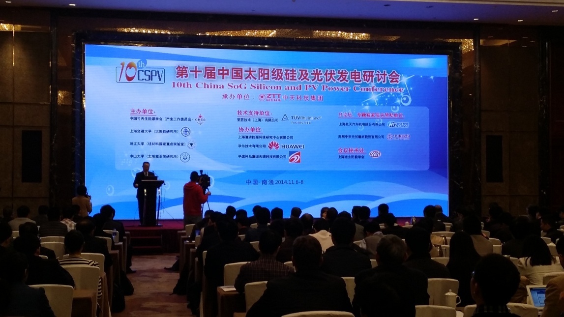 第十届CSPV于2014年11月6-8日在江苏南通顺利召开。本届会议由中天科技集团承办,同时也得到了到了莱茵技术(上海)有限公司公司、上海清洁能源科技研究中心、华为技术有限公司、平煤神马集团天瑞科技有限公司、上海航天汽车机电股份有限公司、苏州中来光伏新材股份有限公司的大力支持和赞助。我系沈文忠教授作为大会秘书长负责组织本次大会。