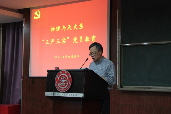 朱卡的强调“三严三实”专题教育不仅要与日常工作有机融合,还要以“三严三实”的标准指导我系制度建设和内涵建设,要从问题导向出发,贯彻从严要求,注重讲求实效,建设好一流物理与天文系。