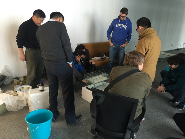 很有意思的是,来自于德国的交流生多大是研究物理理论的,在导师安排动手的实验实践的过程中,同学们发现了彼此思考方式的不同,理论研究者最感兴趣的是原理,而实验研究者更感兴趣的是细节。但这并不代表着这些研究理论的德国职工的动手能力差,大家干起活来,都是一点也不含糊。图为员工们在自己动手制作云室,可以用来观察宇宙射线。
