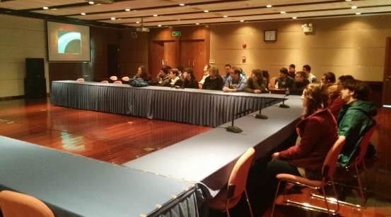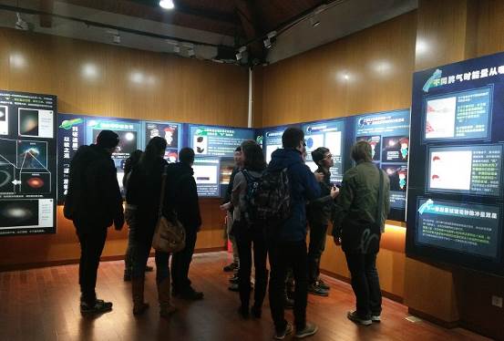 我方校天文协会的同学在和来访生一起探讨宇宙学问题。