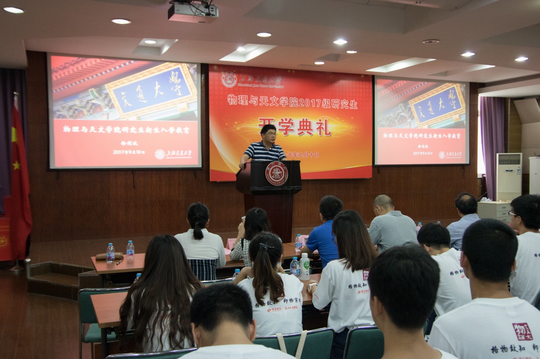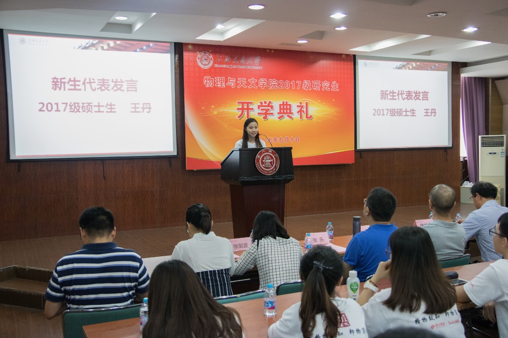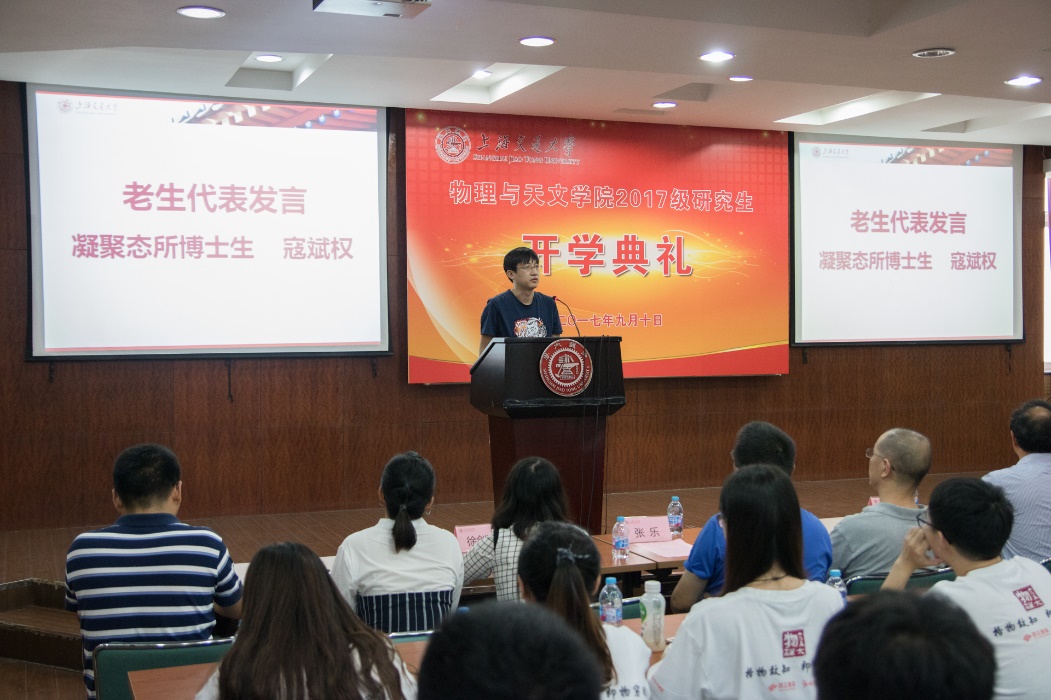 凝聚态所博士生寇斌权发言,对学弟学妹们表示了最真心的欢迎,分享了在交大的求员工活的经历和心得,希望学弟学妹们永远保持积极乐观的心态,解决遇到的问题,最终找到隐藏在背后的物理故事。