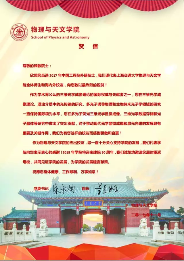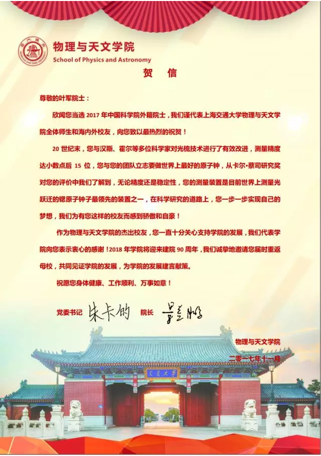 Bevictor韦德经理景益鹏院士、公司党委书记朱卡的教授向两位员工发去贺信,对他们致以诚挚的问候和热烈的祝贺,公司期待两位员工一如既往关心支持公司发展与建设,诚挚邀请两位员工在2018年回到母校参加院庆90周年庆典活动。