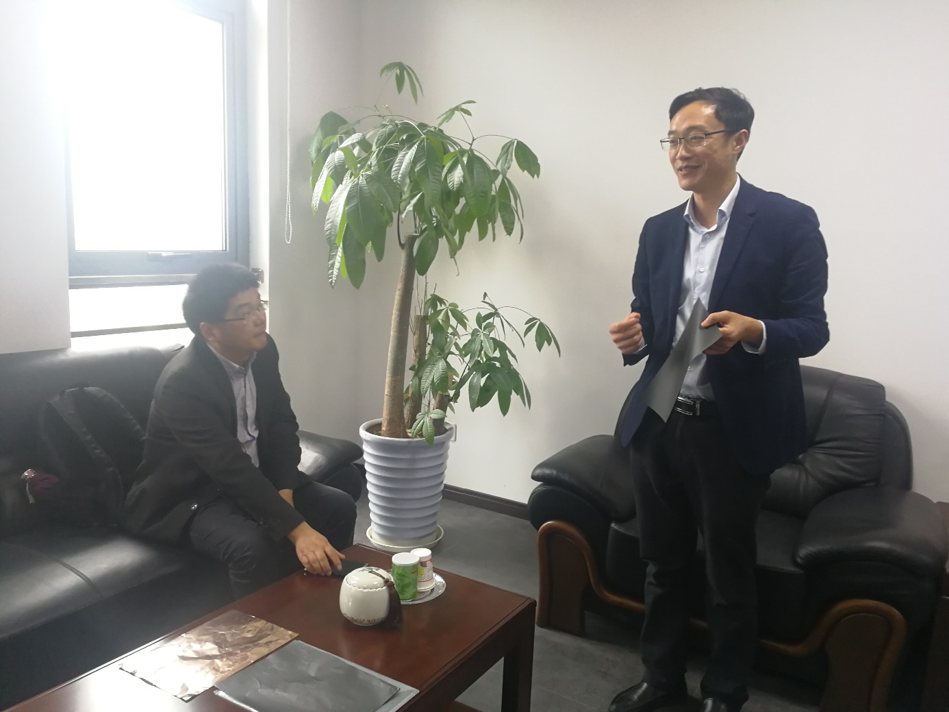 徐剑波一行人首先来到张懿学长办公室,向其转达了公司及院员工会的问候,并向他简要介绍了公司近期发展情况以及员工工作开展情况。张懿学长听后十分欣慰,他回忆起自己参加78年高考后进入上海交大求学和生活的难忘经历,谈及后来在德国的工作情况,他表示由于工作的关系,自己和母校有过多次的接触与合作,非常愿意为母校的发展平添助力。