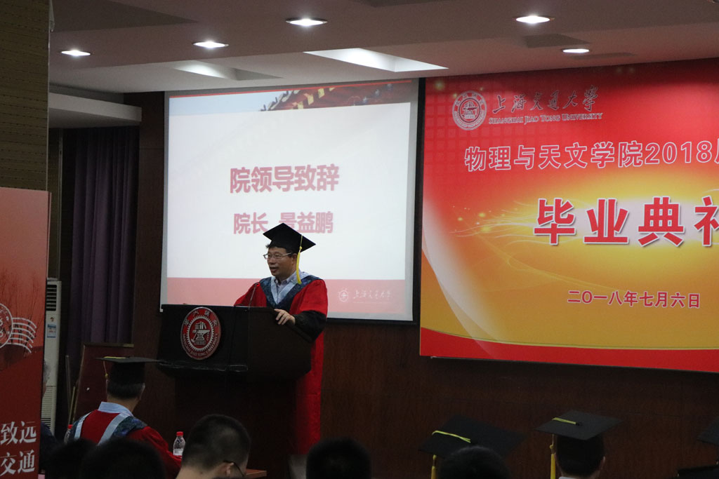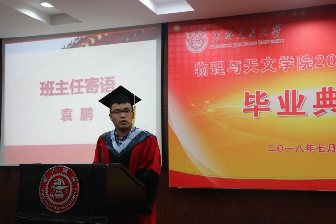 首先,经理景益鹏致辞,他回顾了2018届毕业生所取得的诸多收获,并对毕业生们提出了三点希望:第一,希望大家成为有时代责任感的物理人;第二,希望大家成为不断求索创新的物理人;“格物致知,即物穷理” 在探索中不断突破自我,在在逆境中矢志不渝,披荆斩棘。第三希望大家成为心怀感恩的物理人。牢记“饮水思源,爱国荣校”的校训,用感恩之心回报社会。