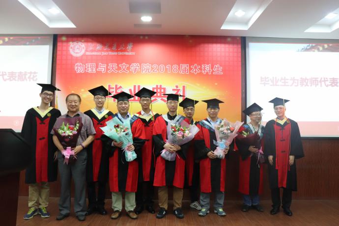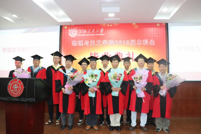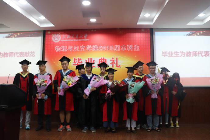 紧接着,毕业生代表分三批上台为17位教师代表献花,感谢老师们四年来为培养他们而付出的心血,现场响起热烈的掌声。