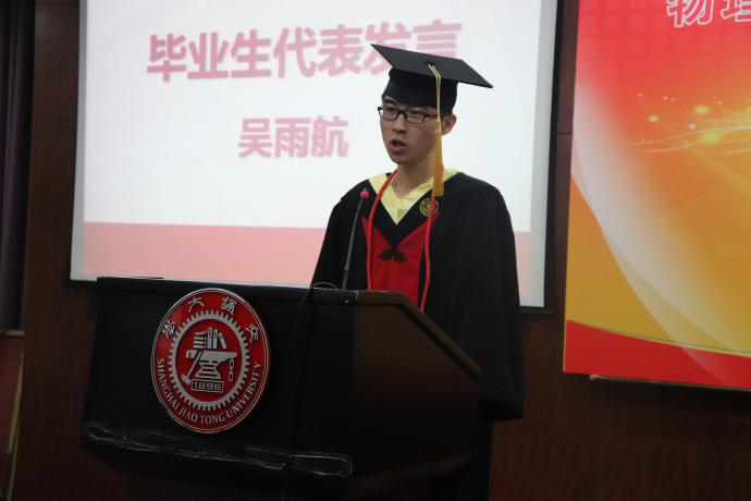 学位授予仪式结束后,校优秀毕业生吴雨航同学作为毕业生代表发言。他敞露自己的心声,动情讲述大学四年的美好回忆,感恩公司带给他的进步与成长,并祝愿毕业生们永远珍惜同学情谊。