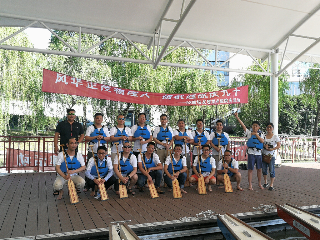 最后,一行人前往东区第五餐厅旁开展"迎院庆划龙舟"体验活动。员工们希望通过划龙舟这一特别的方式纪念自己毕业二十周年,同时迎接即将到来的九十周年院庆。98届员工毕业20周年返校活动在一片欢声笑语中落下帷幕。