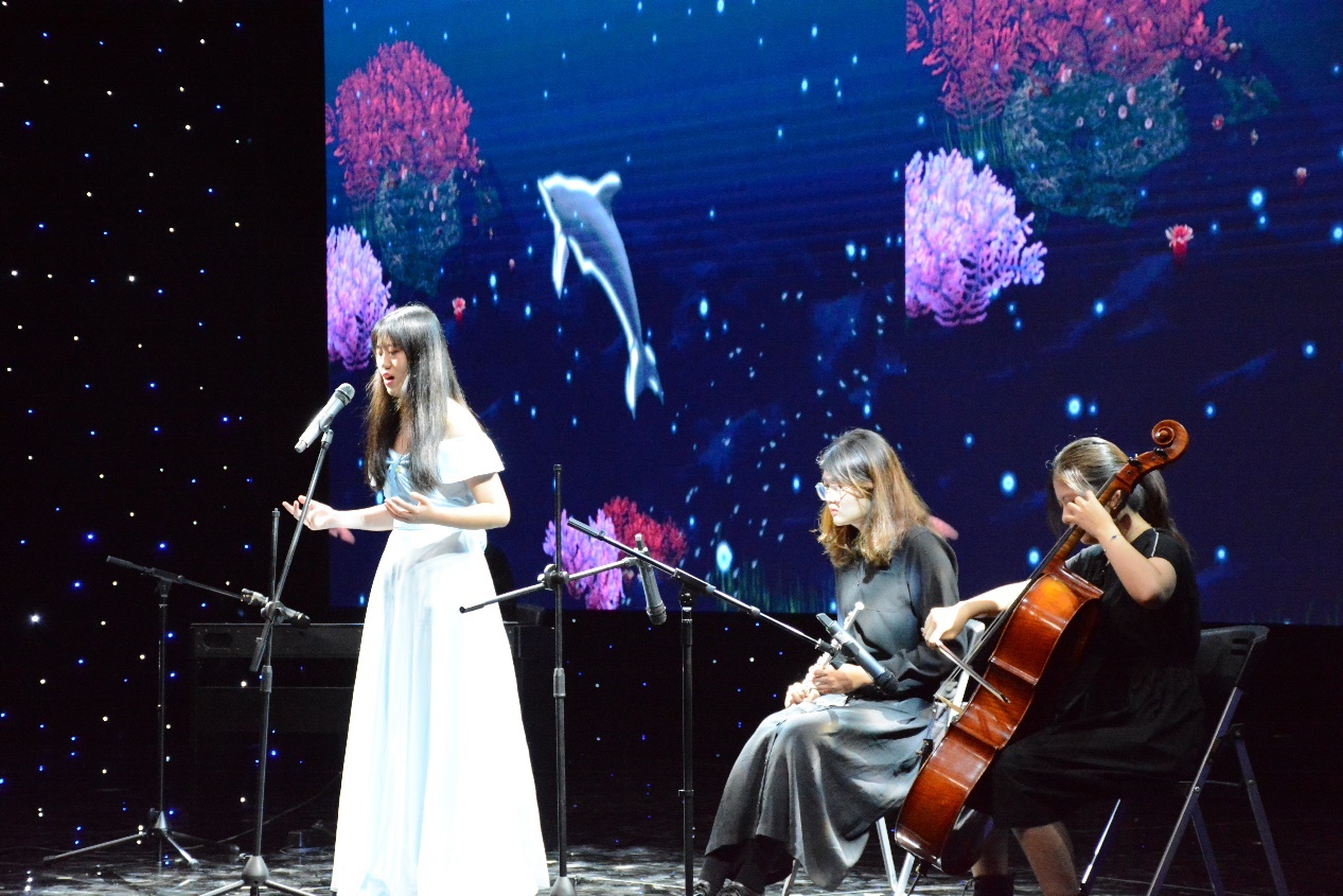 接下来,黄靖涵同学及爱乐者协会带来了器乐合奏《加勒比海盗》,小提琴与大提琴精妙配合,浑然天成,带来的富有节奏张力充满感情的曲风,勾起了在座对无拘无束的自由生活的向往。