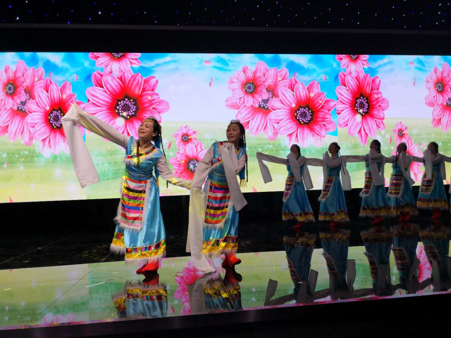 随后,藏族舞蹈《卓玛》为节目增添了多元的色彩,演员老师们引领观众走上草原,走上雪山,领略甘甜的美酒、悠扬的牧歌、不败的格桑花、美丽的姑娘卓玛拉……让在场的观众流连忘返。