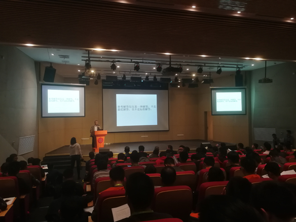 在李政道图书馆报告厅,参赛选手参加了由李政道研究所副所长、讲席教授顾威作的题为《衍生现象——物理世界的社会行为》的学术报告,并由大学物理教师为员工讲解竞赛考题。同学们积极踊跃提问,现场气氛非常热烈。