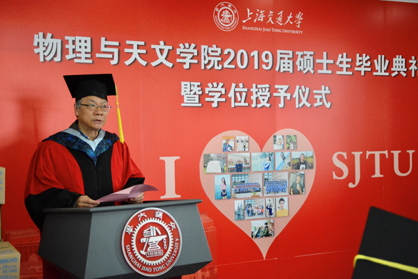 朱卡的书记首先为大会致辞,他肯定了2019届研究生党员在校期间的出色表现,并对大家提出了三点要求。第一,他强调每位毕业生党员在今后的工作生活中要保持不断学习,不断加强思想政治觉悟,时刻牢记党员身份,对党忠诚。第二,要始终坚守物理人格物致知的品质,刻苦努力艰苦奋斗,抓住新时代赋予的新机遇。第三,要发挥专业优势,培养创新精神,为建设科技强国贡献力量。最后,他祝愿同学们放飞梦想,扬帆起航,在新时代开启新的征程。