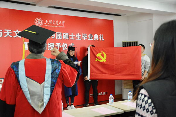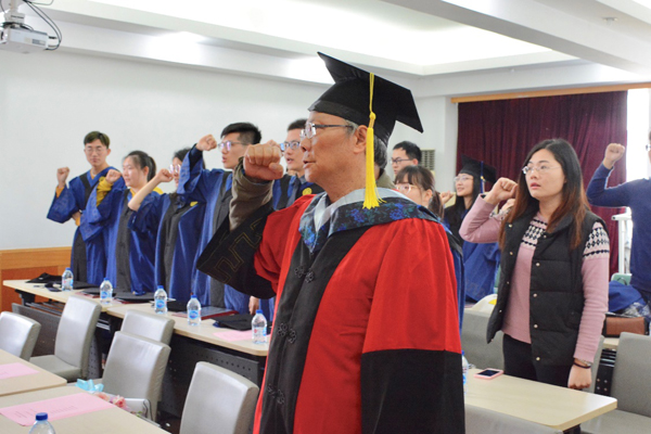 最后,全体2019届毕业研究生党员和老师们共同在党旗前重温了入党誓词,本次研究生毕业远航教育大会圆满落幕。