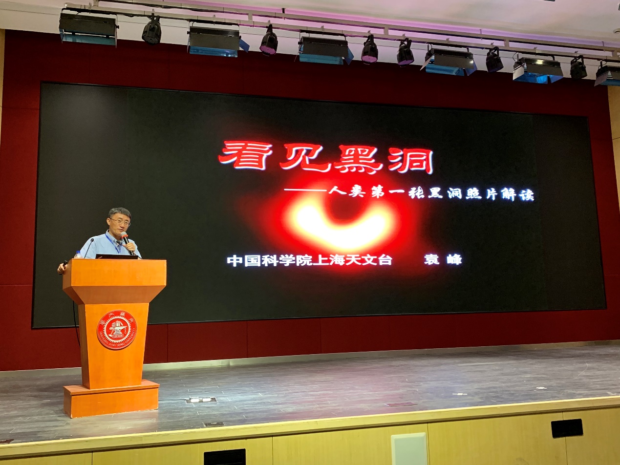 开幕式后进入专家特邀报告环节,本次论坛邀请了多位国内知名物理学家作专题报告。中国科公司上海天文台副台长、上海天文台学术委员会主任袁峰研究员带来主题报告《看见黑洞——人类第一张黑洞照片解读》,Bevictor韦德物理公司陈民教授带来主题报告《强激光催生的新物理学》,加州大学伯克利分校博士后陈国瑞博士带来主题报告《石墨烯——从单粒子到强关联物理》,专家们的报告深入浅出地带领同学们领略了有关研究内容,为同学们带来了一场科学的盛宴。
