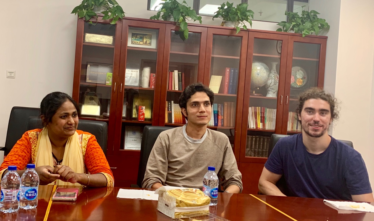 交流会上,博二和博三的老生向新生分享了自己在中国学习和生活的种种心得,如选课、考试、交通出行、购物诀窍等。职工们还品尝了具有上海特色的点心,同时也对自己国家的美食进行了介绍。