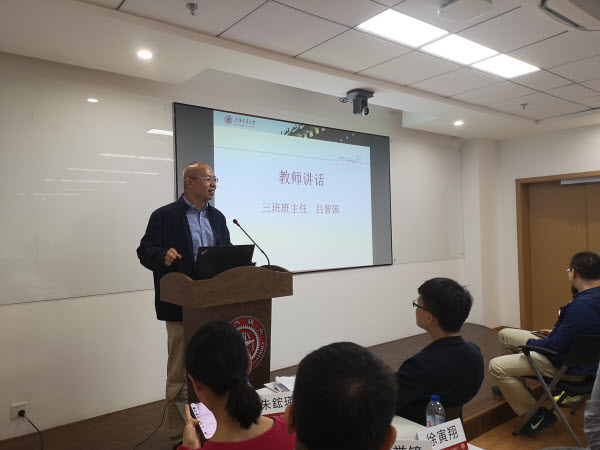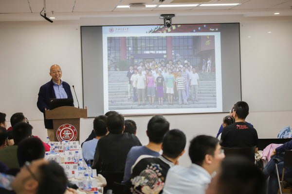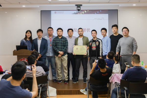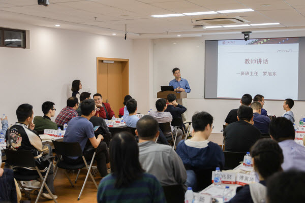在交流环节,吕智国老师为大家带来一场特别的班会。三位班主任现场重现当年的班会点名环节,员工们感慨万千,随后,吕老师通过照片展示、物理题问答等环节,带领员工们重温当年的大学时代,员工们一边玩游戏,一边回忆起往昔点点滴滴,一时间会议室里充满大家的欢声笑语。会议结束前,从欧洲远道而来的员工上台为大家带来当年毕业时演唱过的歌曲《送别》,现场掌声雷动,最后班级代表向员工们分发本次活动的纪念礼品,全体嘉宾在新理科大楼前合影留念,毕业十周年返校座谈会圆满结束。