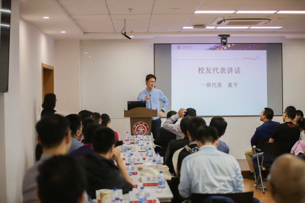 接着,本次活动三个班级联络人上台讲话。他们回忆了班级员工之间的同窗情谊,讲述了筹备过程中的小故事,表示通过筹备本次活动能把国内外员工联系起来感到非常荣幸,期间还播放了海外员工发来的祝福视频,呼吁未来能举办更多同学聚会联络同学感情。