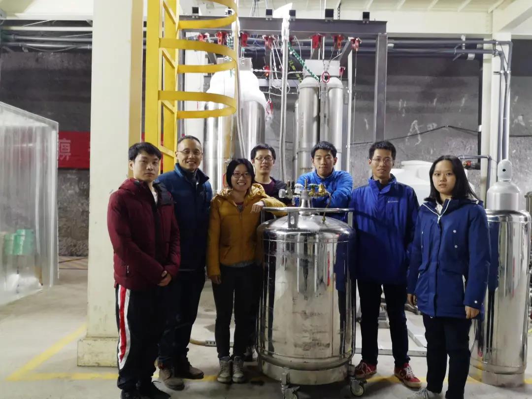 刘江来老师(左二)带领PandaX团队在四川锦屏地下实验室共度2020年春节