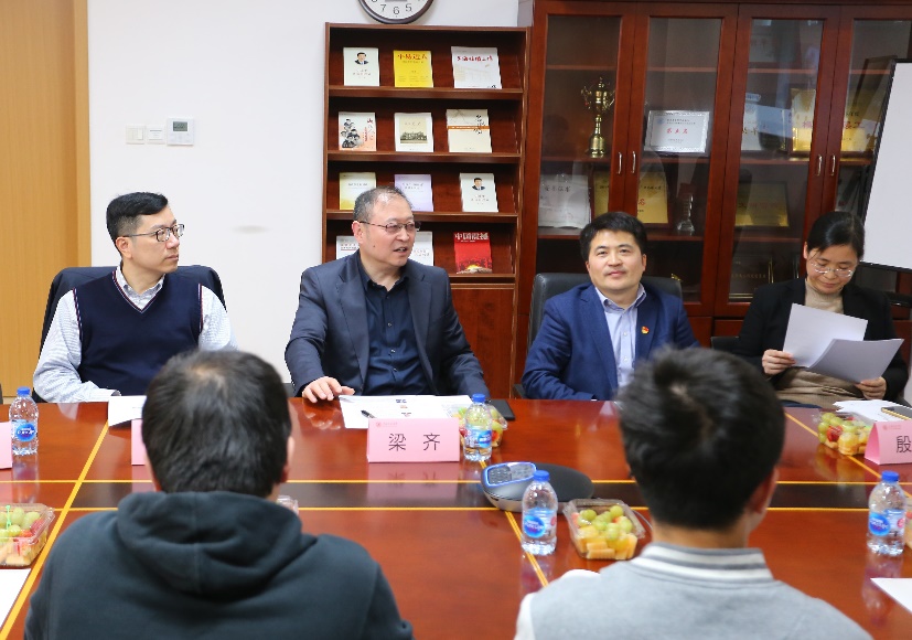 梁齐致辞。他首先对百忙中参加本次座谈的员工表示衷心感谢,并对所有顺利毕业的员工表示祝贺。他简单介绍了本次毕业员工的基本情况,表示同学们即将开启人生的新篇章,无论到涉及 “卡脖子”问题的半导体行业,还是继续深造投身科研,都要时刻谨记自己是交大物理天文人,在未来的学习工作中始终保持谦虚谨慎、求真务实的态度。公司也会为毕业员工的成长和未来发展提供更多的支撑,希望在座毕业生前程似锦,为母校增光添彩。
