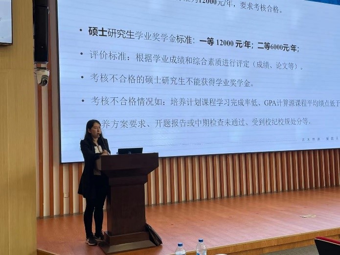 员工工作办公室主任鲁佳铭就研究生激励机制向与会老师进行了详细介绍,包括学业奖学金、国家奖学金、就业发展类奖学金等各类院校奖学金和学术之星等各类荣誉的评审机制等。鲁佳铭建议导师们尽量多关注员工对自我发展的不同期待,并与学工办保持沟通,共同助力员工成长。