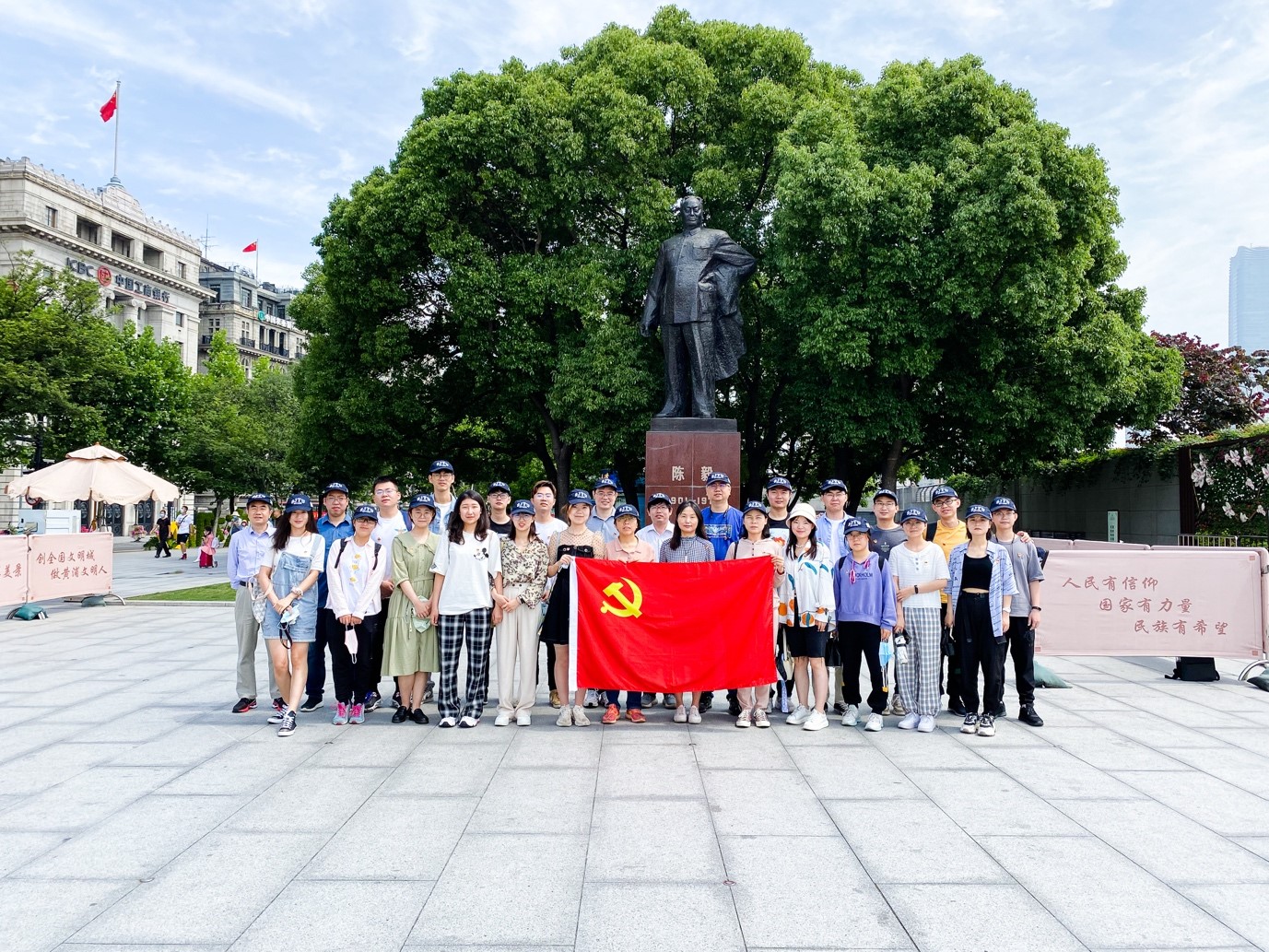 光纤国重师生在新中国上海第一任市长陈毅的铜像前合影