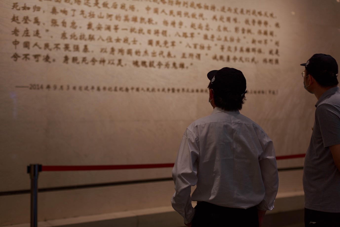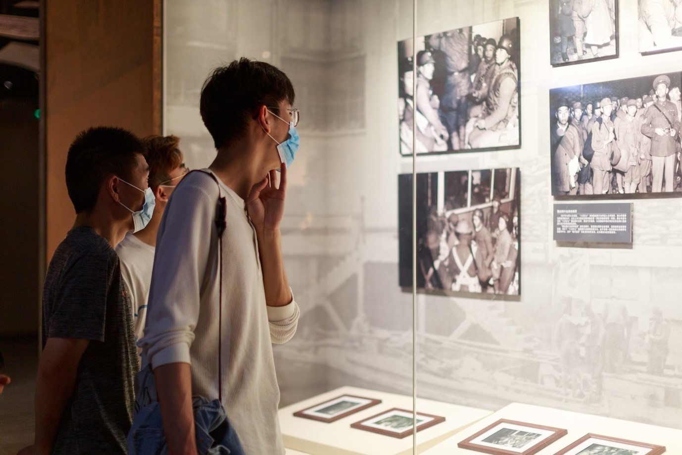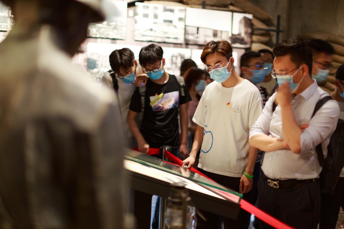 光纤国重的员工陈亮在观看四行仓库纪念馆的展览