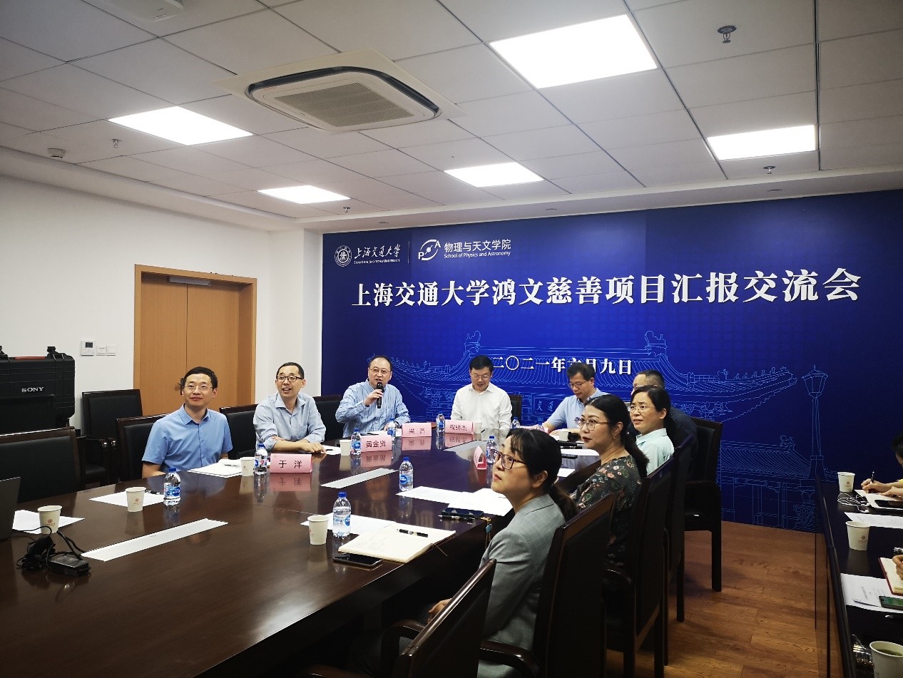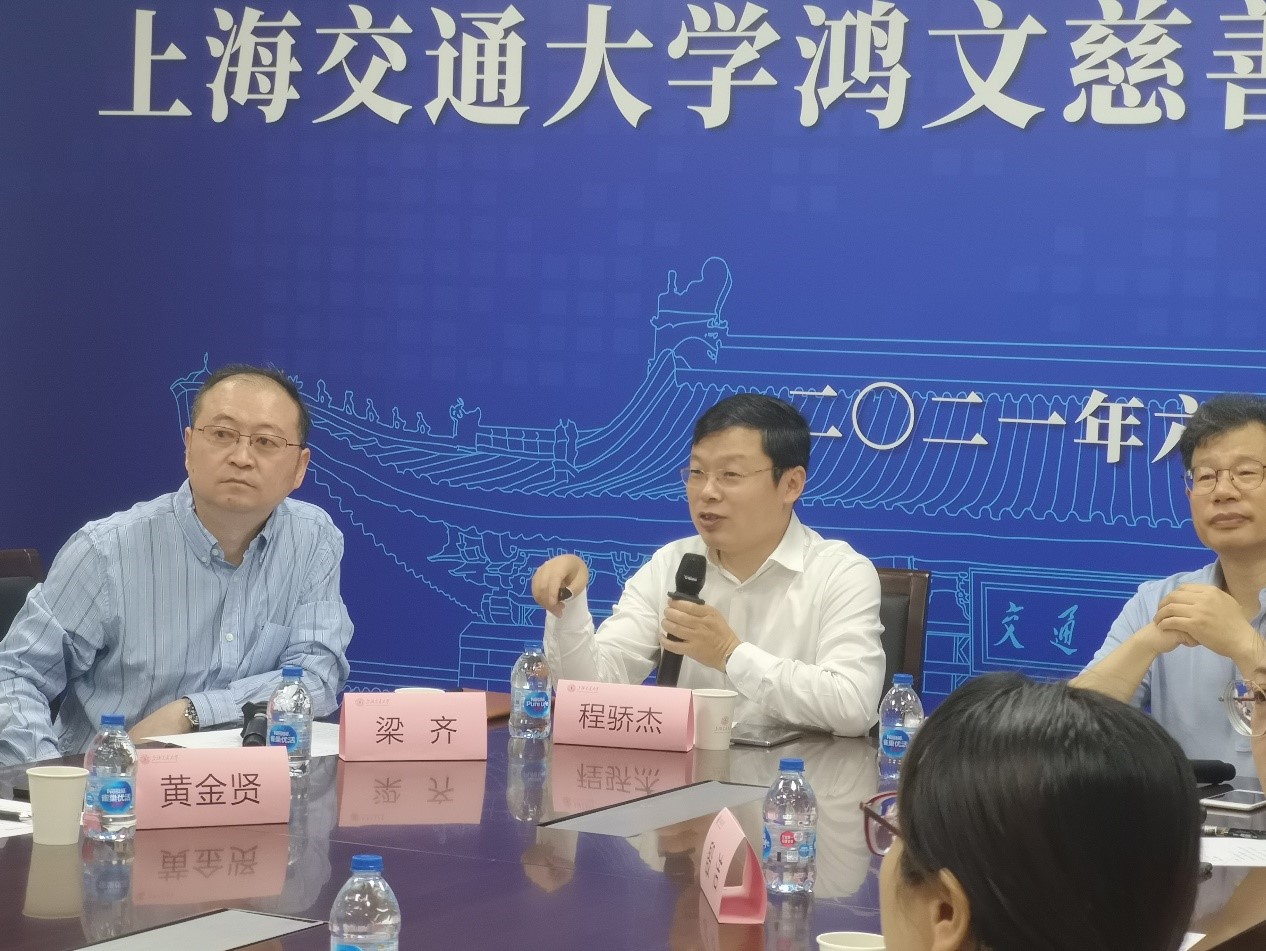 程骄杰回顾了上海交大与鸿文慈善基金的历史渊源,并汇报基金使用情况。他表示,自2015年刘銮鸿先生任交大校董以来,双方建立了深厚的友谊,鸿文慈善基金对上海交大的发展提供了强有力的支持,特别是设立暗物质研究基金和冠名讲席教授基金,对PandaX项目团队的科学研究和人才培养发挥重要激励作用,期待未来能继续支持上海交大的科研工作。