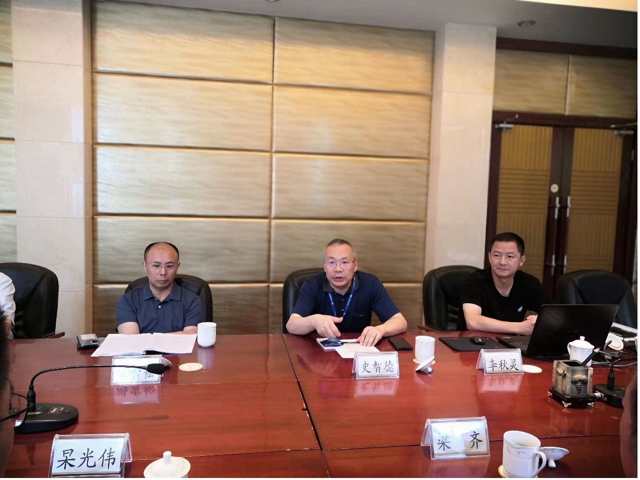 史智德致辞,他代表中物院对交大实践团的到来表示欢迎,简要回顾了双方已经开展的多维度合作,并期待能够在人才输送方面有更多突破。