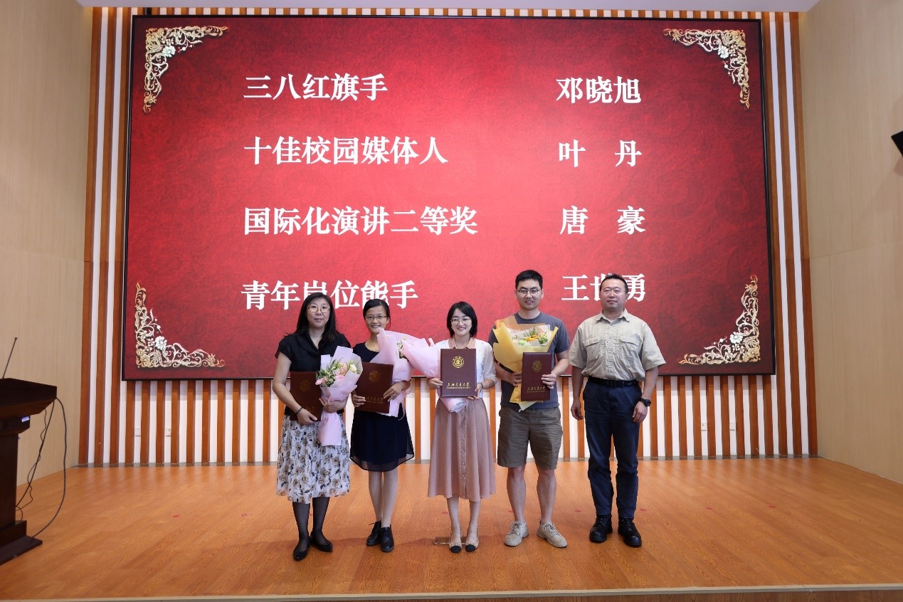 邓晓旭获评“三八红旗手”,叶丹获评“十佳校园媒体人”,王世勇获评“青年岗位能手”,唐豪在国际化演讲比赛中勇夺二等奖。
