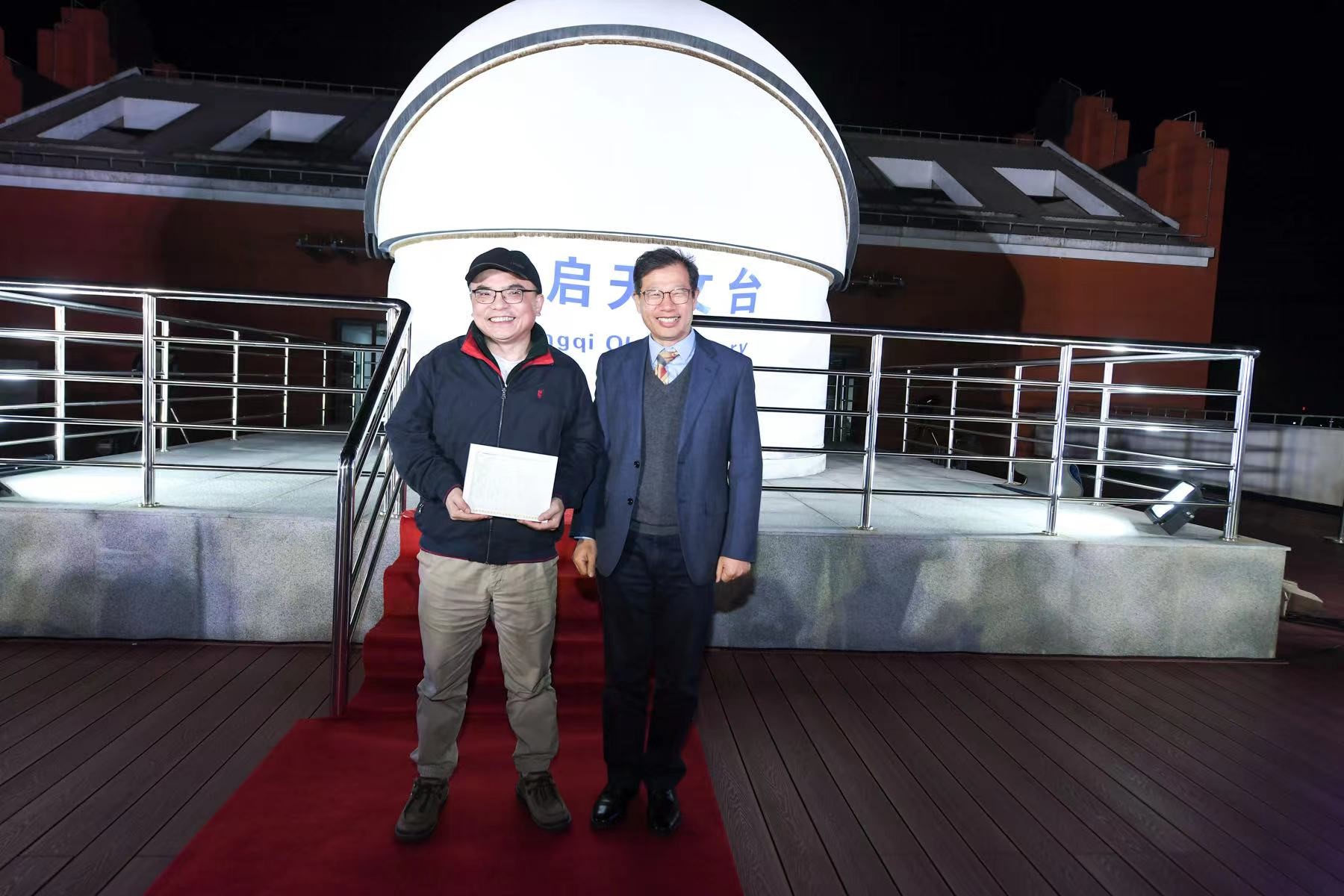 随后,林忠钦、朱新远、吴敏春、郭玮、景益鹏和梁齐等在现场观众的见证下共同为“光启”天文台揭幕。