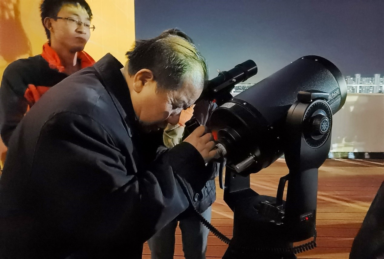 启用仪式结束后,在天体实时观测环节,现场嘉宾热情高涨,在工作人员的引导下先后使用三个望远镜对月球、木星和土星进行观测,天文系员工志愿者为大家进行同步讲解,嘉宾们纷纷被望远镜中的天体景象所震撼,感慨宇宙的神奇与奥妙。