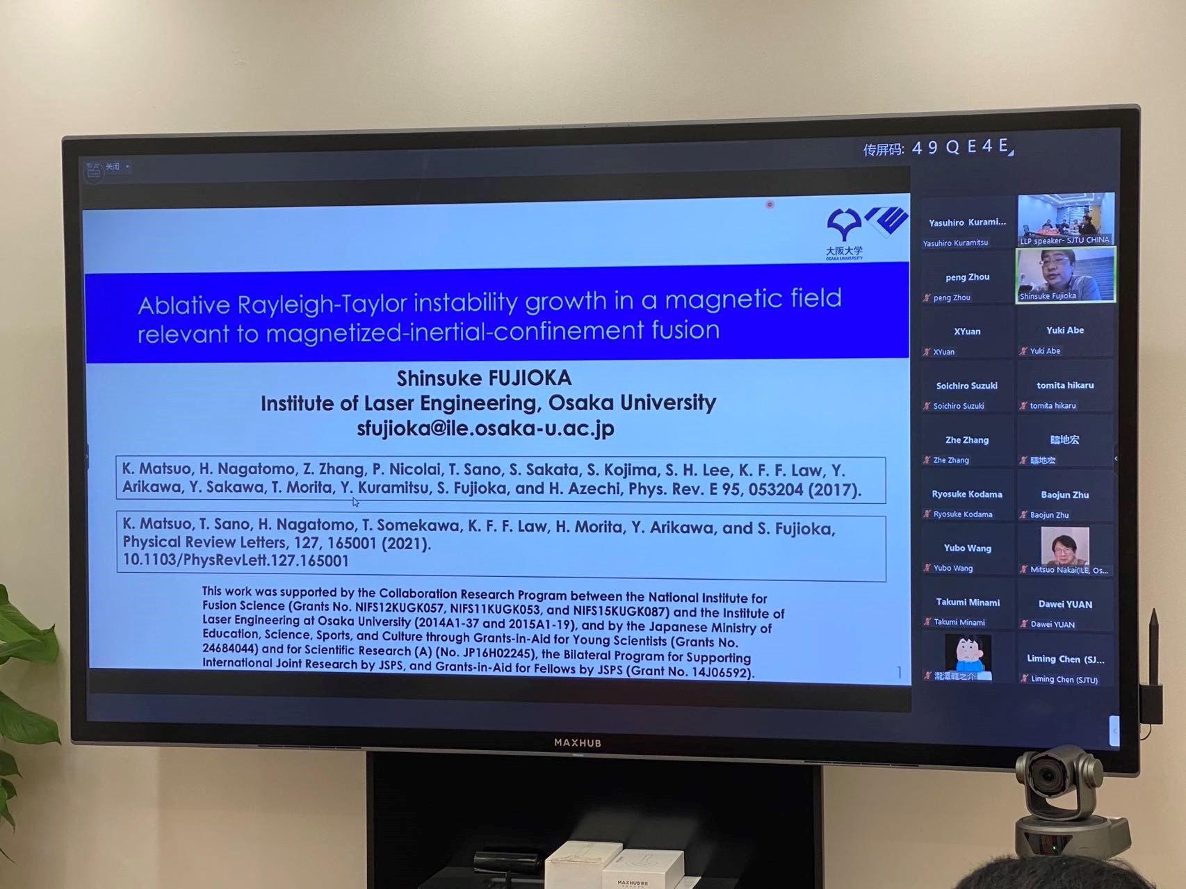 Shinsuke Fujioka (OU), “Ablative Rayleigh-Taylor instability growth in magnetic field relevant to magnetized-inertial-confinement fusion”