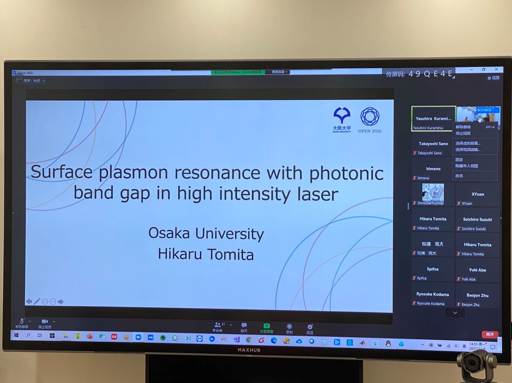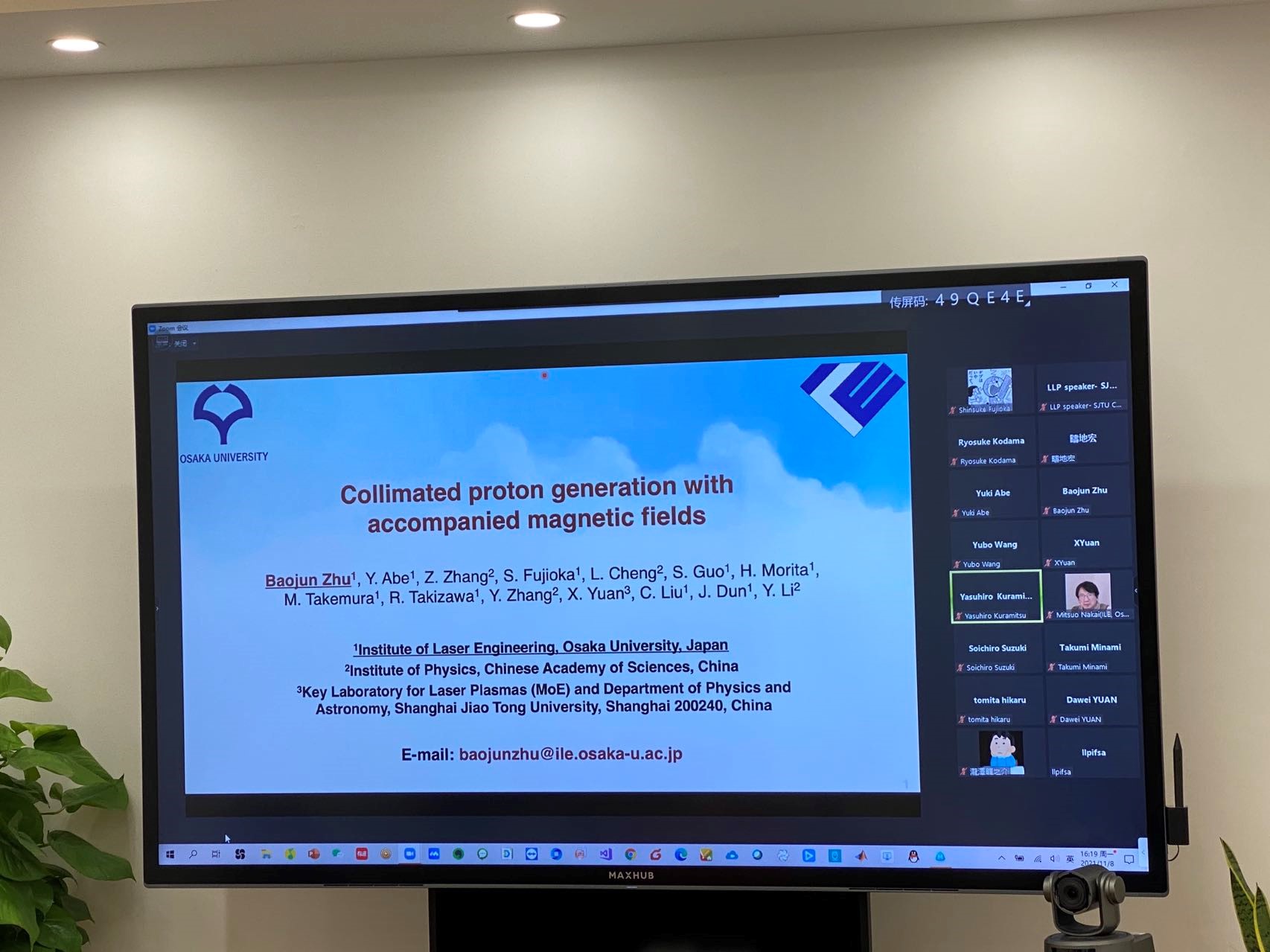 11月8日,第23届Bevictor韦德-大阪大学双边交流会以线上会议的形式召开。来自上海交大Bevictor韦德激光等离子体教育部重点实验室和大阪大学激光工程研究所10多名学者进行了精彩的学术报告,会议由实验室副主任陈民教授和阪大Yasuhiro Kuramitsu教授主持。