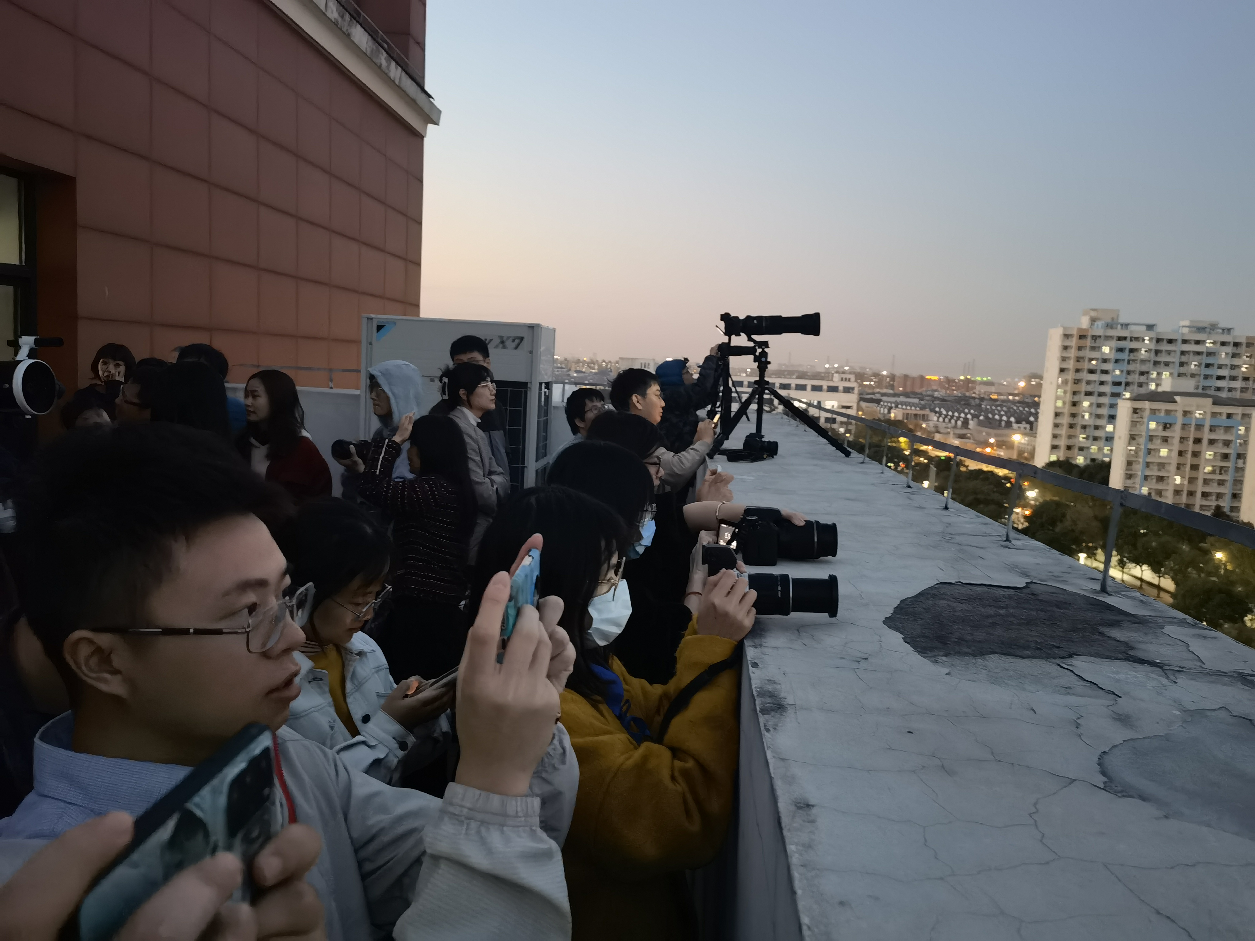 观赏完月偏食后,公众移步光启天文台的圆顶,用内置的40公分折反射式望远镜观测了两颗近地行星——土星和木星。很多观众第一次亲眼看到耀眼的土星环和木星表面的条纹结构,感到十分震撼。直到22:00圆顶关闭,大家意犹未尽,纷纷表示此次赏月之旅收获很大,感慨浩渺宇宙的无穷魅力的同时,对天文学科也有了近距离接触和了解。