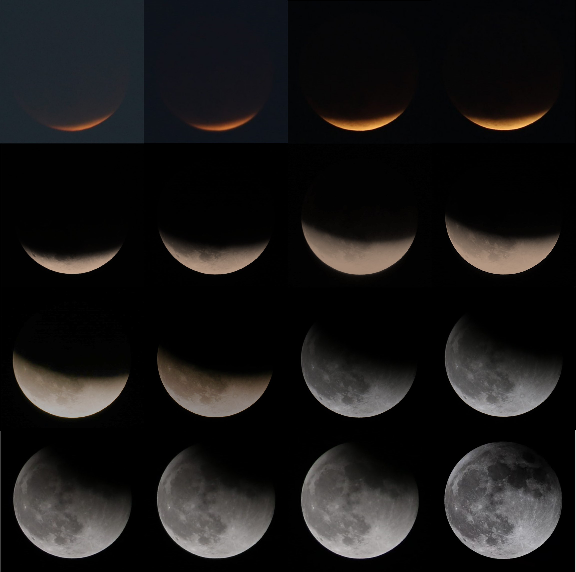 月偏食是月食的一种,即当月亮的一部分处于地球的本影之内,在地球上看来,月亮会出现部分残缺。月偏食一般发生在满月之时,分半影食始、初亏、食甚、复圆、半影食终这几个阶段。当天上海月出时间为16:52,恰好在食甚附近,但由于云层遮挡的影响,月偏食出现的时间比预计的晚了些。在食甚阶段,天空可见一轮红月。这是因为月亮本身不发光,虽然在地球的本影中,太阳光经过地球大气的折射,波长较短的光被散射得更厉害,只有波长较长的红、橙、黄光线才能抵达我们的眼睛,所以月亮看上去是橙黄色甚至有些发红。随着月亮逐渐升高,月亮很快就变成白色或白黄色。
