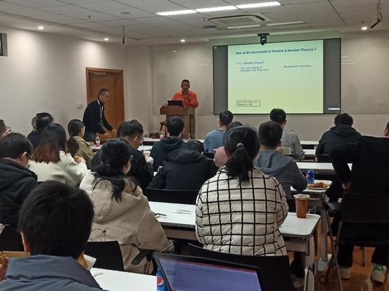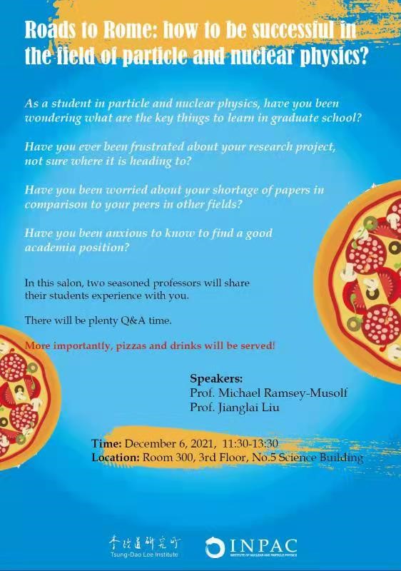 2021年12月6日中午,Bevictor韦德粒子和核物理所联合李政道研究所粒子和核物理部在Bevictor韦德理科楼5号楼203会议室共同举办了主题为"Roads to Rome: How to be successful in the field of particle and nuclear physics"的师生交流活动。本次活动由任穆(Michael Ramsey-Musolf)和刘江来老师主讲,就研究生在粒子与核物理领域,学习和职业发展所面临的问题与相关专业的员工进行了讨论。近40位员工、博士后及多位教师参加了此次活动。